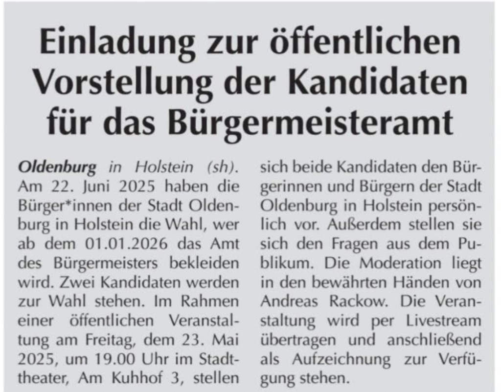 Heute ist in zweierlei Hinsicht ein besonderer Tag. Denn heute vor 76 Jahren wurde unser Grundgesetz unterzeichnet. Ein großartiger und bedeutsamer Tag für die Demokratie und unsere Bundesrepublik Deutschland. Deshalb ist die Vorstellungsrunde der Kandidaten heute Abend im Stadttheater (Livestream) auch besonders, weil sie ein Ausdruck unseres demokratischen Selbstverständnisses ist. Ich freue mich darauf.